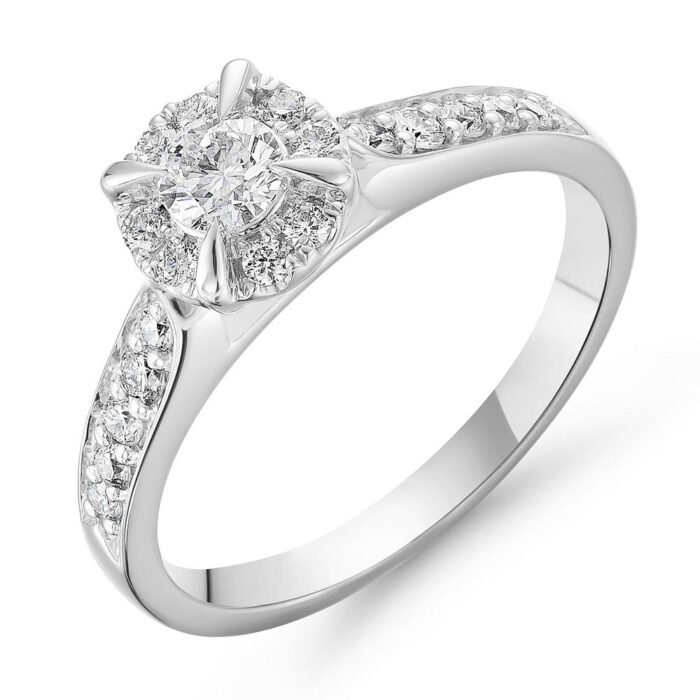 Product Details SKU SR02168-WGP900 The Paola Halo Solitaire Ring by Carat Lane is a beautiful and elegant piece of jewelry that